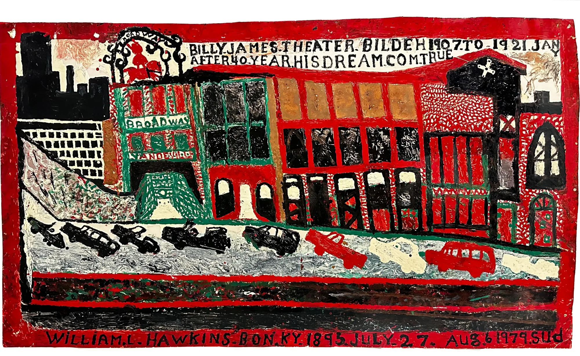 William HawkinsBilly James Theater, 1979Enamel on construction paper28 1/2 x 48 in. (72.4 x 121.9 cm)(WH 496)